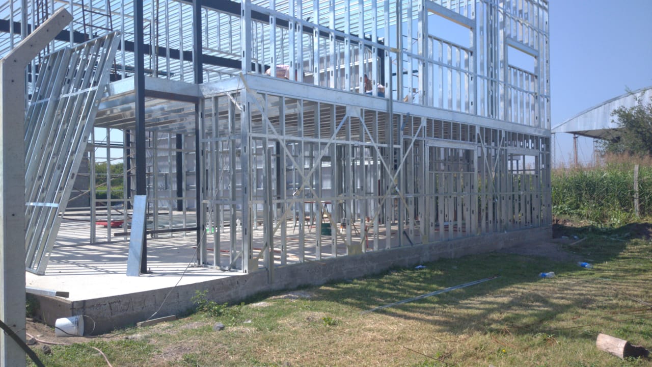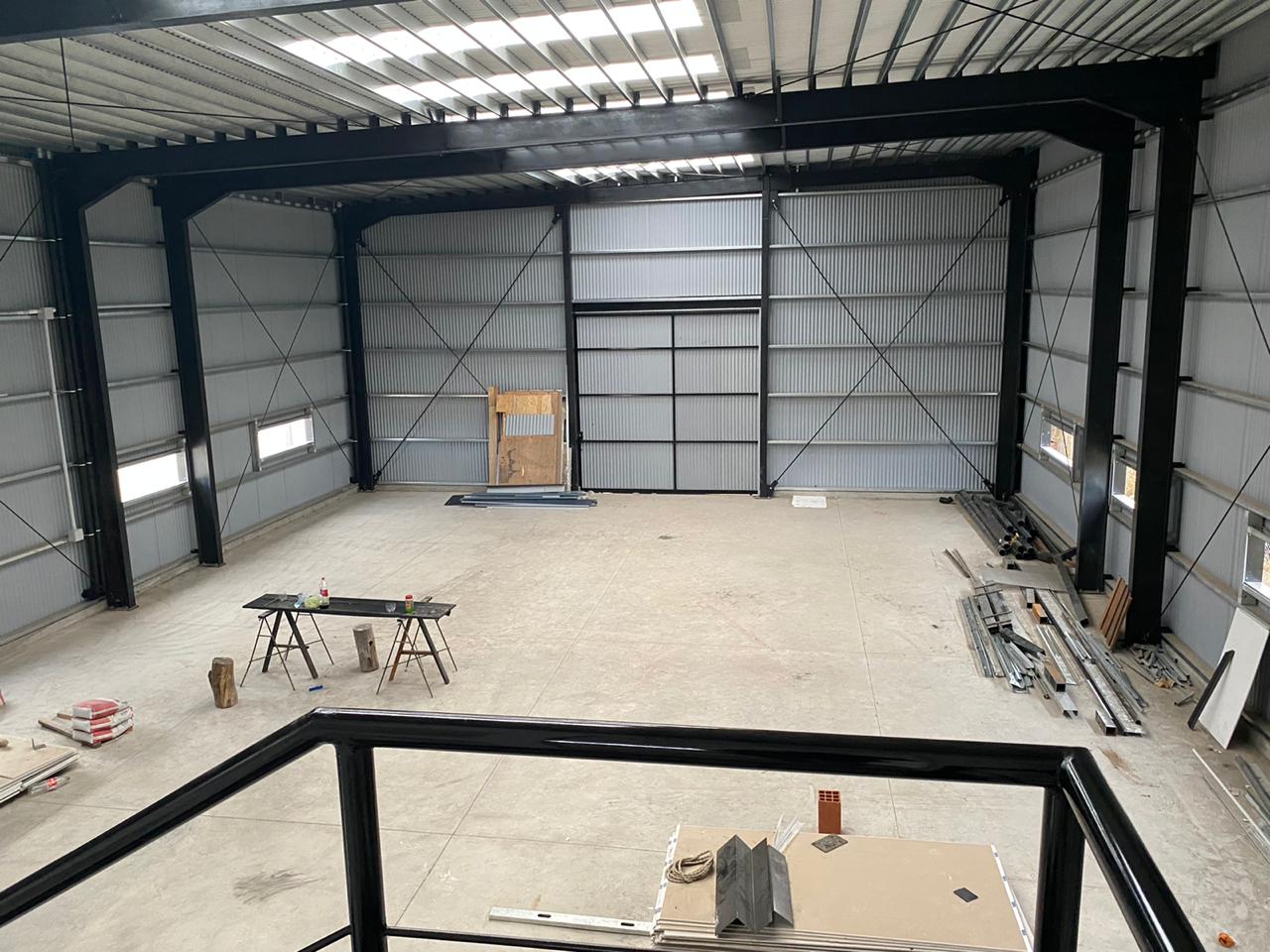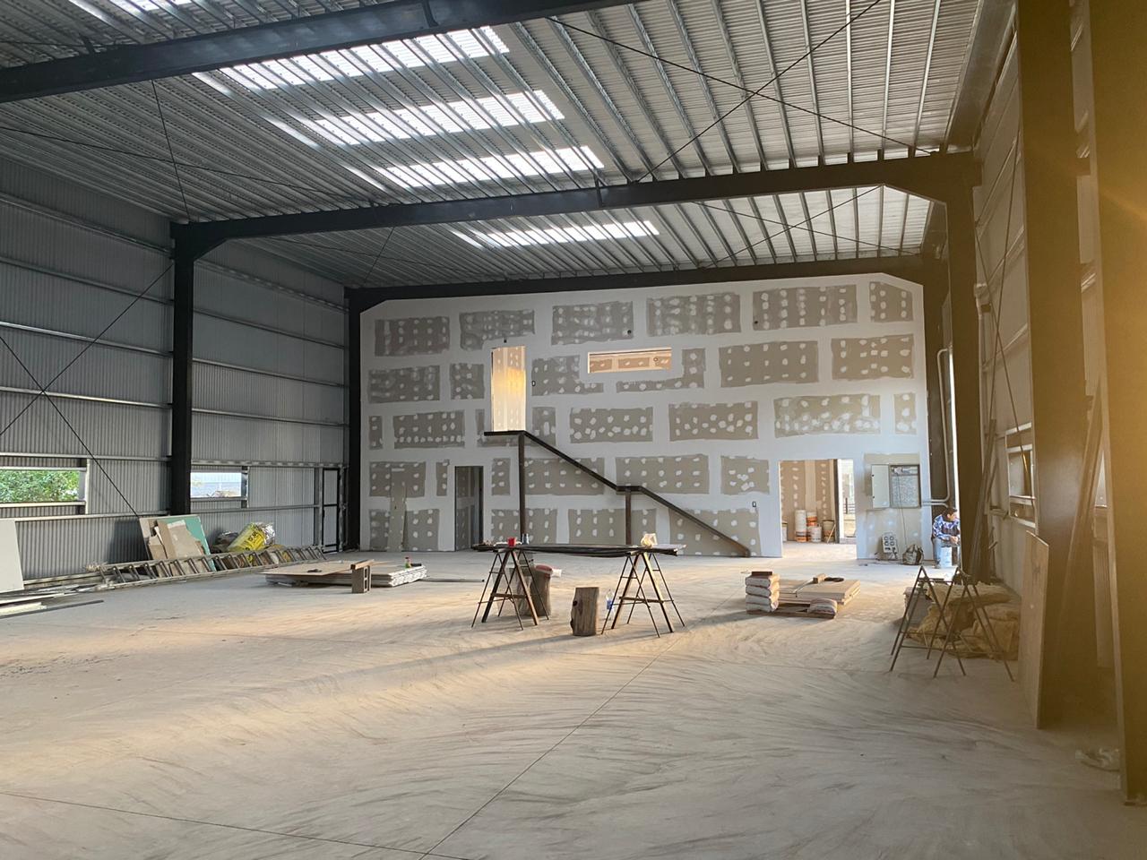 Galpón realizado con estructura metálica pesada, perfiles de acero y chapa. Oficinas en drywall. Malagueño, Córdoba.
