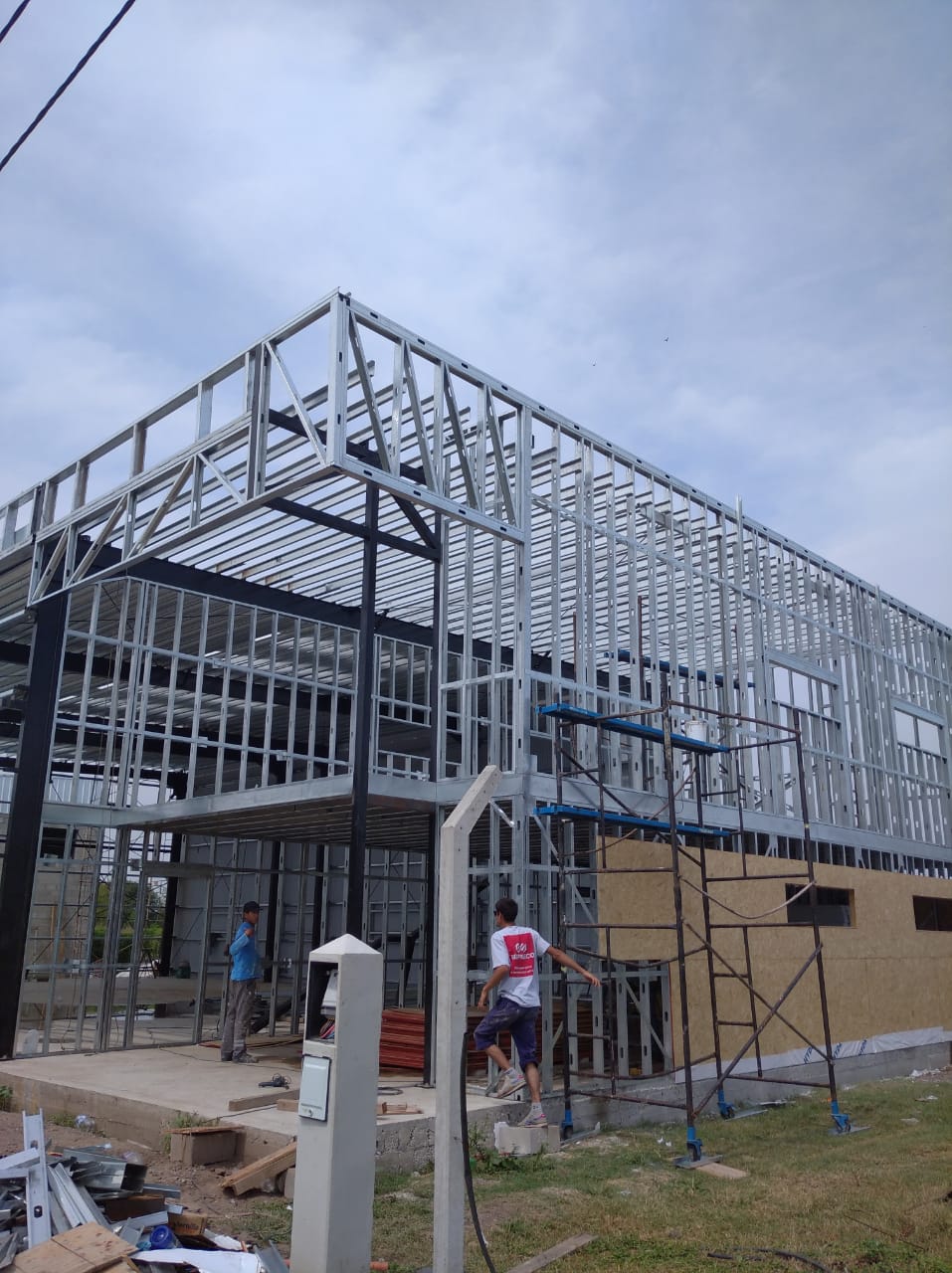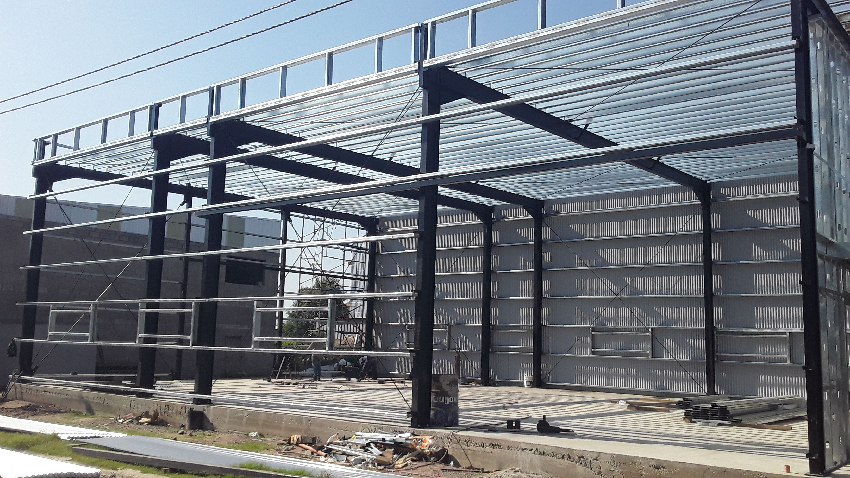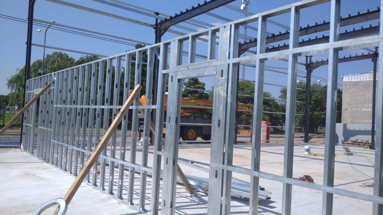 Galpón realizado con estructura metálica pesada, perfiles de acero y chapa. Oficinas en drywall. Malagueño, Córdoba.